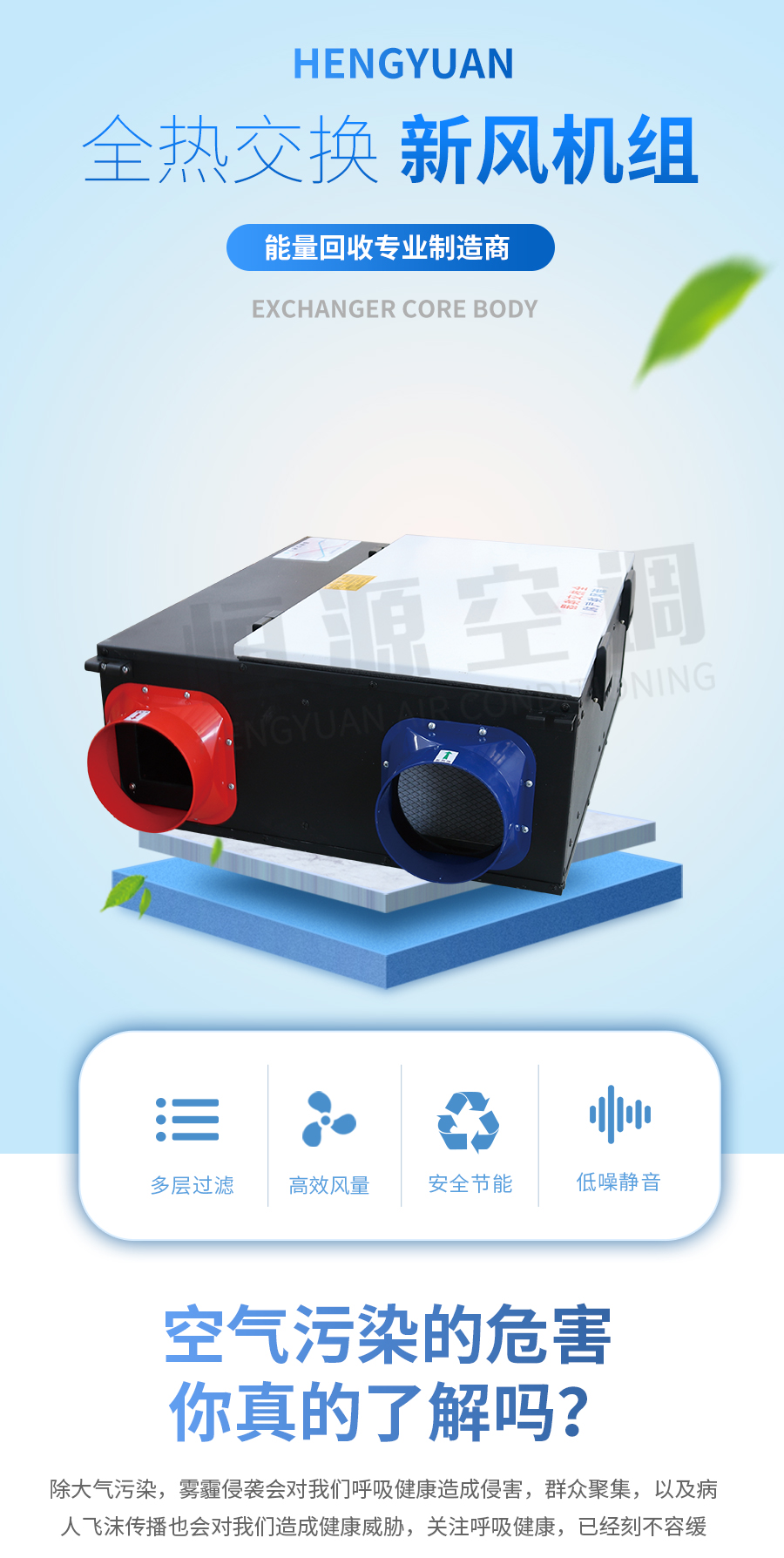 靖江市恒源空調(diào)設(shè)備制造有限公司——新風(fēng)換氣機(jī)是根據(jù)在密閉的室內(nèi)一側(cè)送風(fēng)另一側(cè)引風(fēng),則在室內(nèi)會形成“新風(fēng)流動場”的原理進(jìn)行設(shè)計研制的。它依靠機(jī)械送風(fēng)、引風(fēng),強迫在系統(tǒng)內(nèi)形成新風(fēng)流動場。是一種時刻保持室內(nèi)空氣潔凈清新的新型環(huán)保電器。這種獨立的室內(nèi)空氣置換、凈化循環(huán)系統(tǒng),能在排除室內(nèi)的污染空氣的同時,輸入自然新鮮空氣,將輸入室內(nèi)的新風(fēng)先經(jīng)過濾、殺菌、加熱、增氧等多項處理。